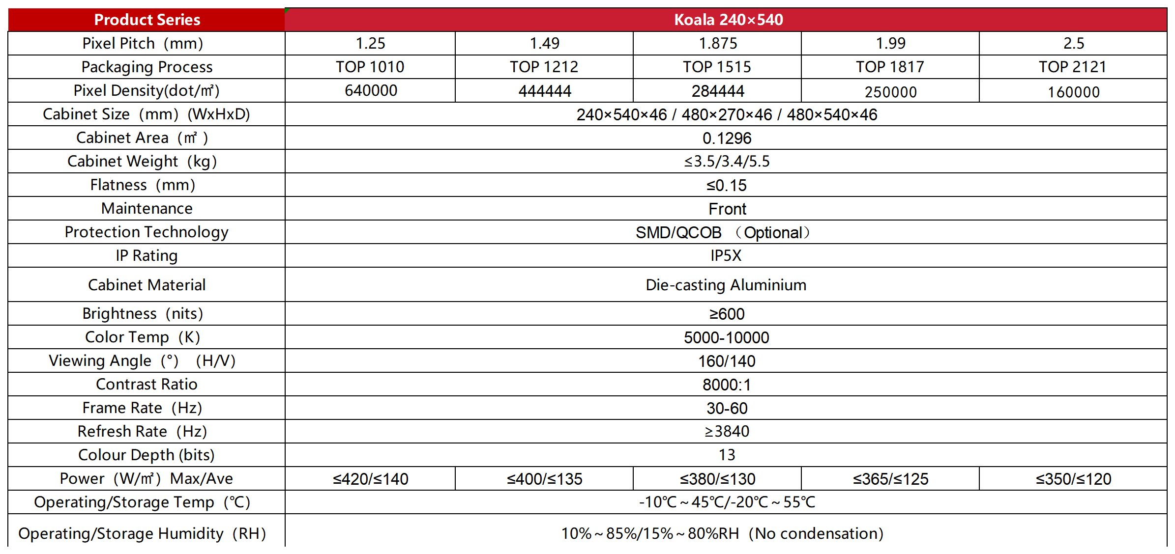 - Module Replacement <2 minutes: Facilitates rapid replacement of faulty or damaged modules, reducing maintenance time and keeping the display operational.